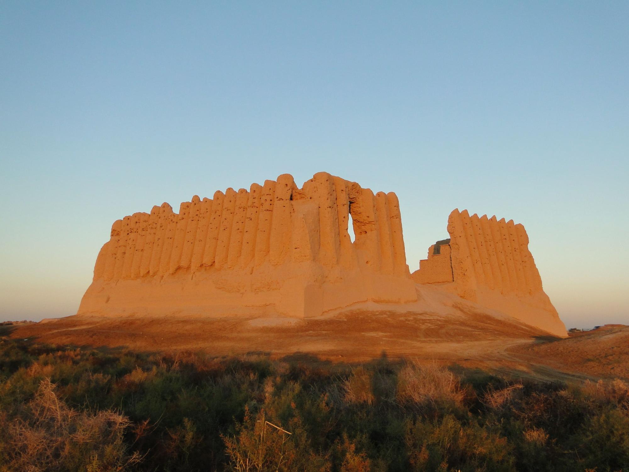 The site preserves impressive ruins — fortresses, mausoleums, and ancient city walls. Among them, the Mausoleum of Sultan Sanjar stands out as a monumental structure rising above the desert landscape.